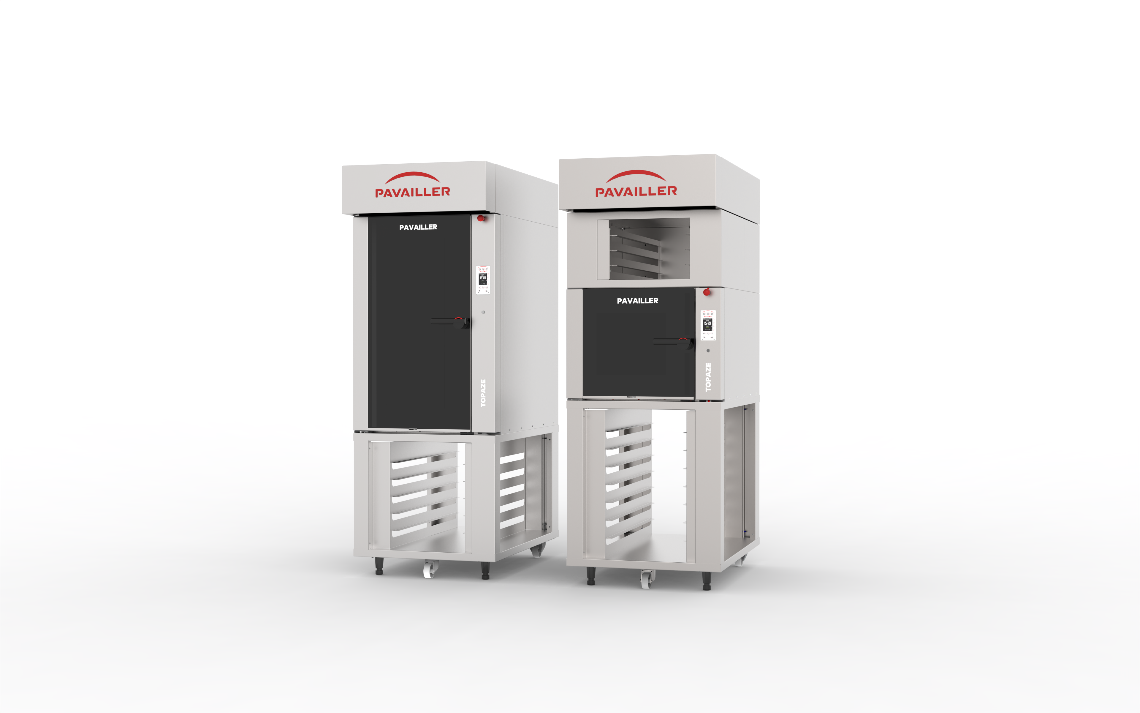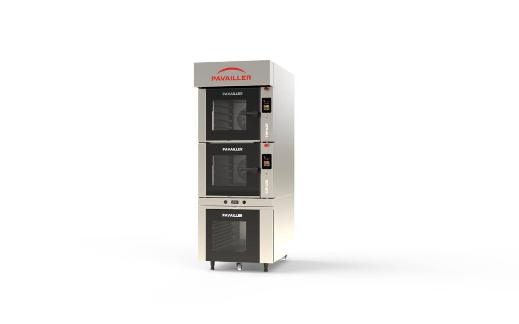 TOPAZE SMART models range from 4 levels (which can be transformed into 5 levels when baking viennoiserie or other non-bulky products) to 10 levels. They can be fitted with 400×600 mm or 400×800 mm baking trays or nets (input direction 400).